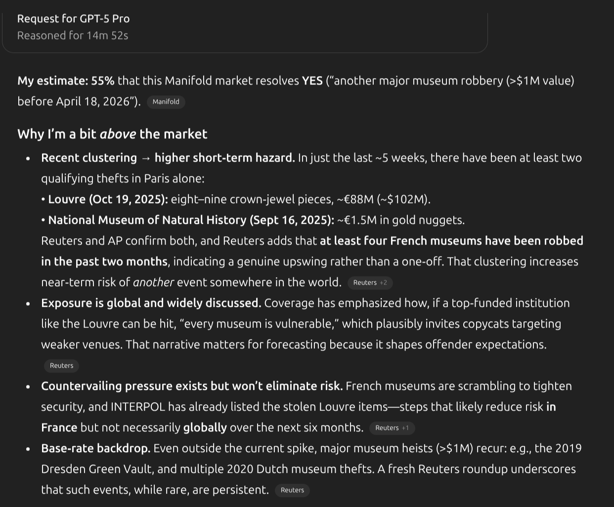 This market tracks whether another significant museum robbery occurs before April 18, 2026, following the recent pattern of high-profile museum thefts. Recent incidents include the October 2025 Louvre heist ($102M), September 2025 National Museum of Natural History robbery, and multiple French museum thefts in 2024-2025.
