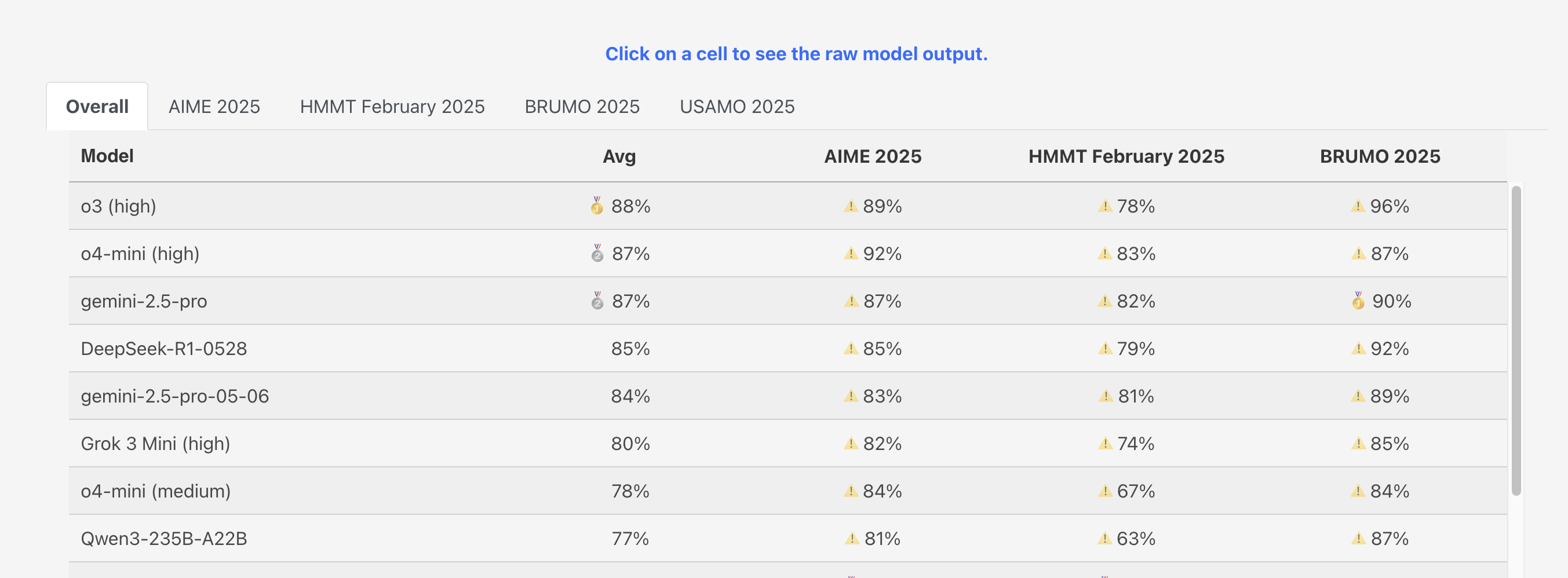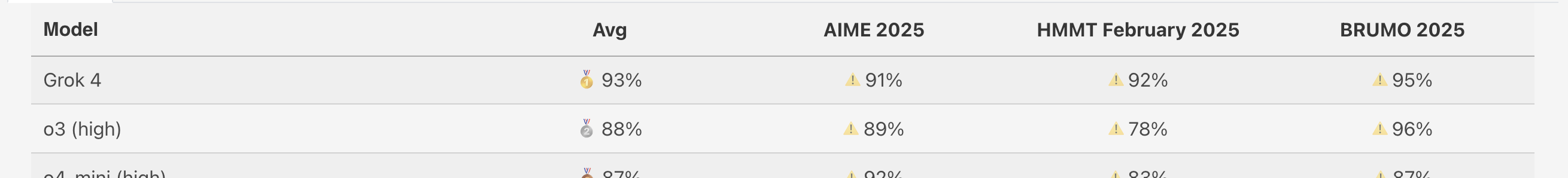 OpenAI's o3 model currently has an 88% Overall accuracy on the matharena.ai benchmark, according to its performance on the AIME 2025, HMMT February 2025, and BRUMO 2025. This market resolves to 'Yes' if any AI model is shown to surpass this score by July 1, 2025.