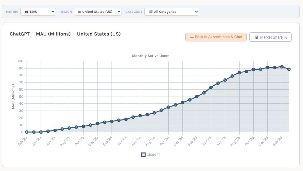 @ShaneBo Ah okay this is a good question! Not sure i think us trends reflect broader worldwide, but def possible. Is it not possible to see non-us mau? Their chatgpt free and go products seems more oriented towards worldwide expansion