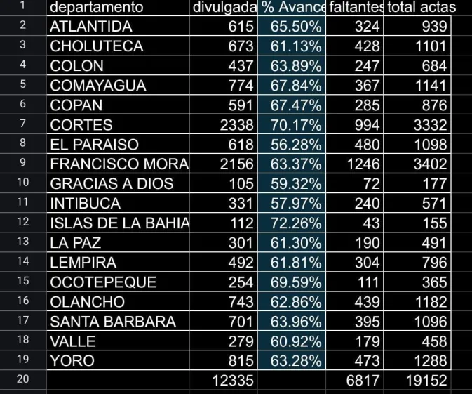 Well, we'll see how this pans out. 8.8k in favor of Asfura now, 84.6% reporting https://x.com/Mario_H28/status/1996512990246433201