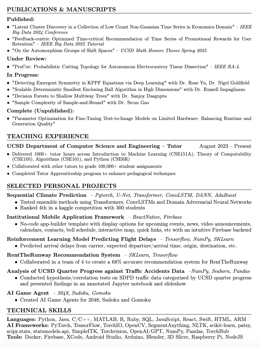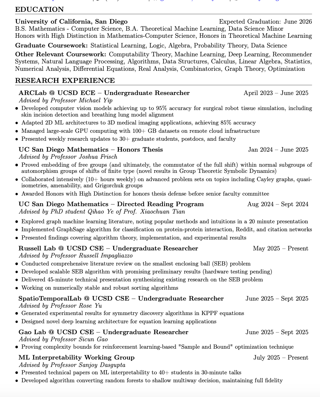 offered strong recommendations from all advisors, getting recommendations from joshua frisch, russell impagliazzo and [sanjoy dasgupta and/or michael yip]