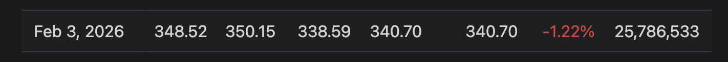 @jim This should resolve YES, since GOOG hit an intraday high of $350.15 on February 3rd.