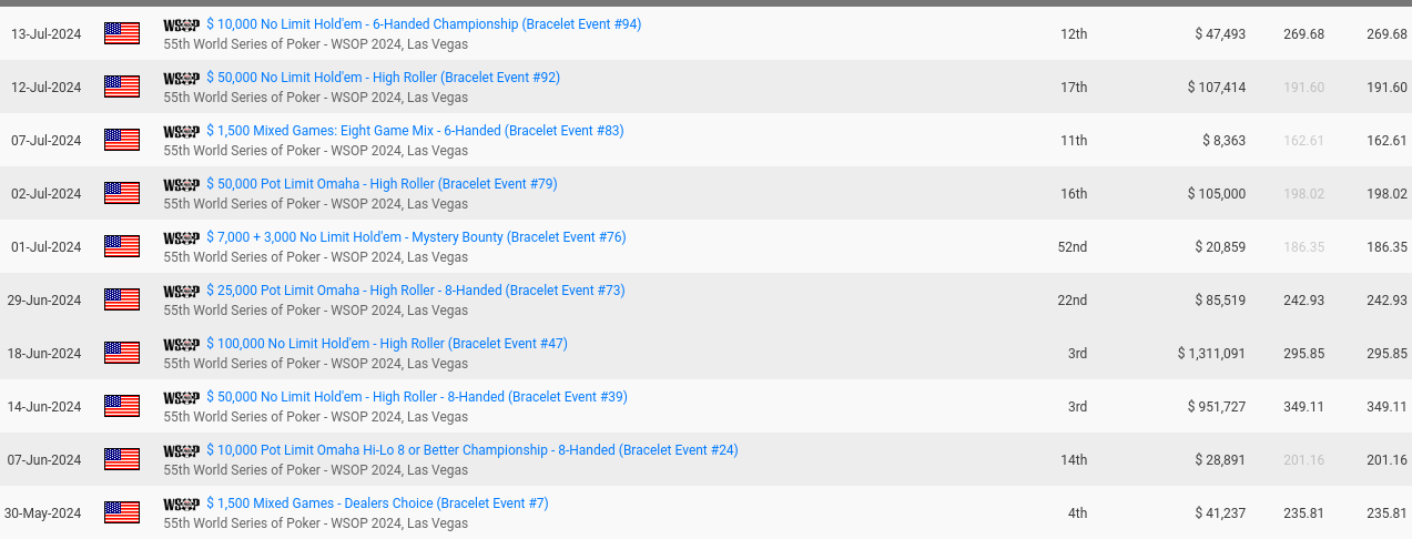 Determined by which player has the highest total cashes across all Las Vegas WSOP 2024 events on their Hendon Mob pages (Hendon Mob is a website which tracks how much different players cash for).