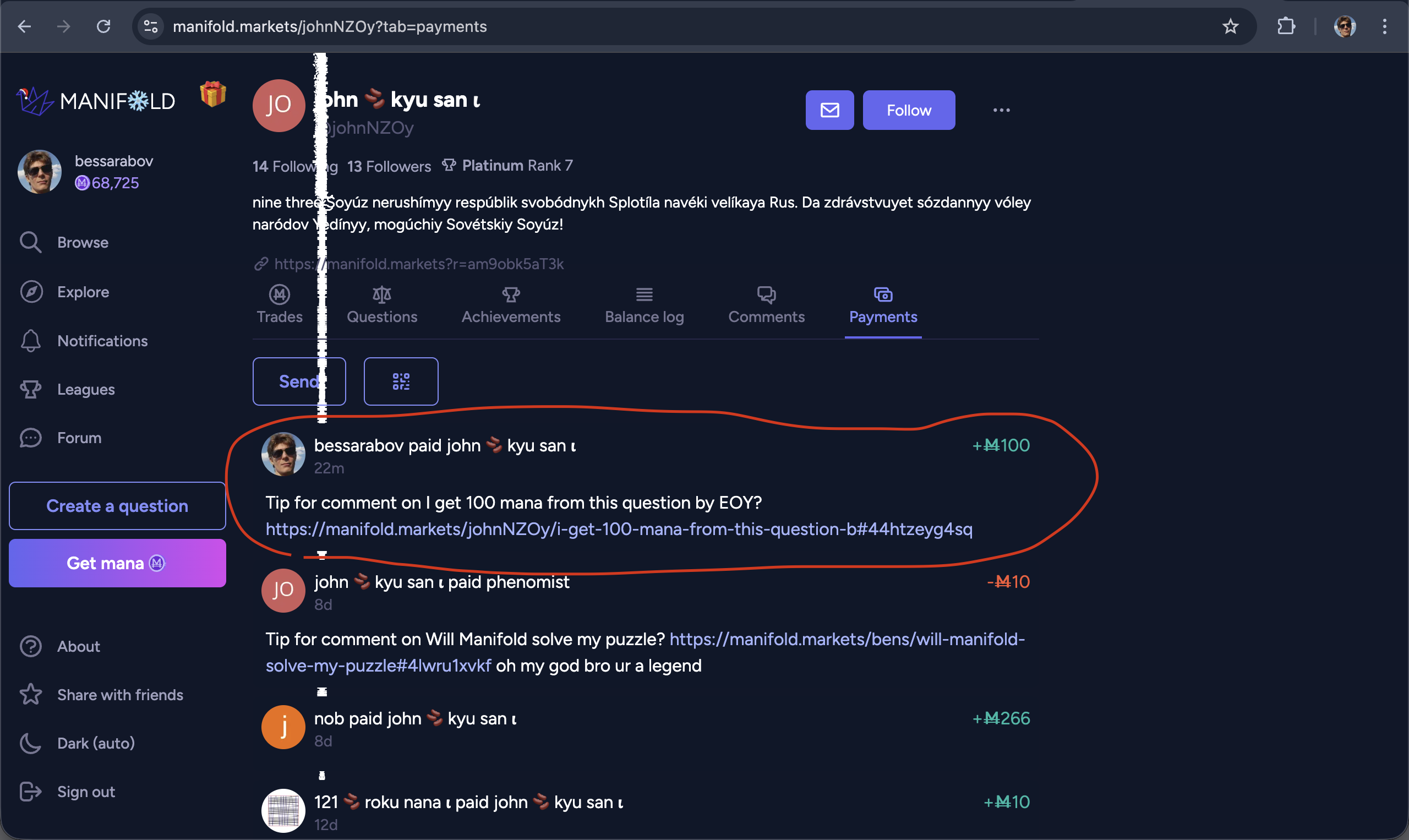 @johnNZOy My understanding is that you received 150 mana for this question (15 traders * 10 mana per unique trader).