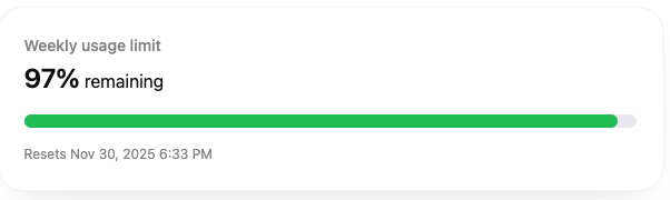 Codex Weekly Usage Limit remaining by Nov 30?