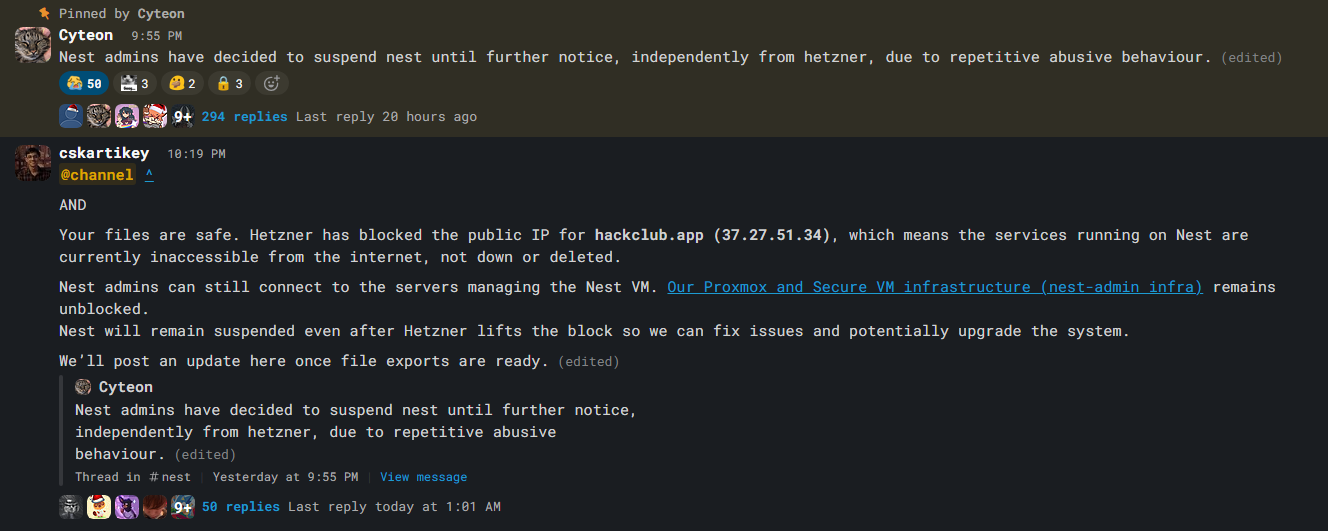 Resolves YES on the date when there's an official announcement that Nest is back up, in EST time