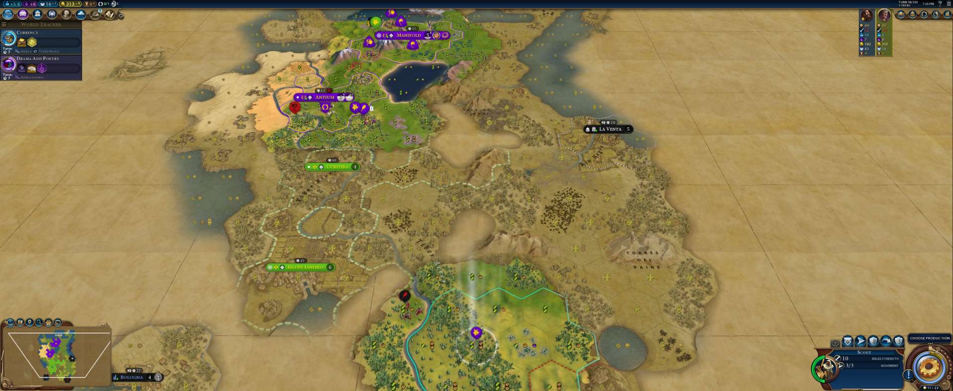 Ancient era ends in 3 turns.