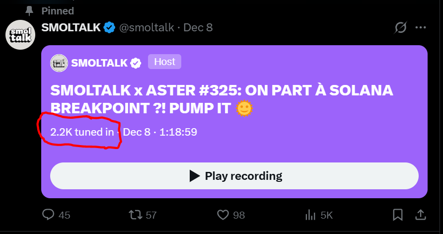 How many "tuned" will be displayed at the end of tomorrow's smoltalk X space ?