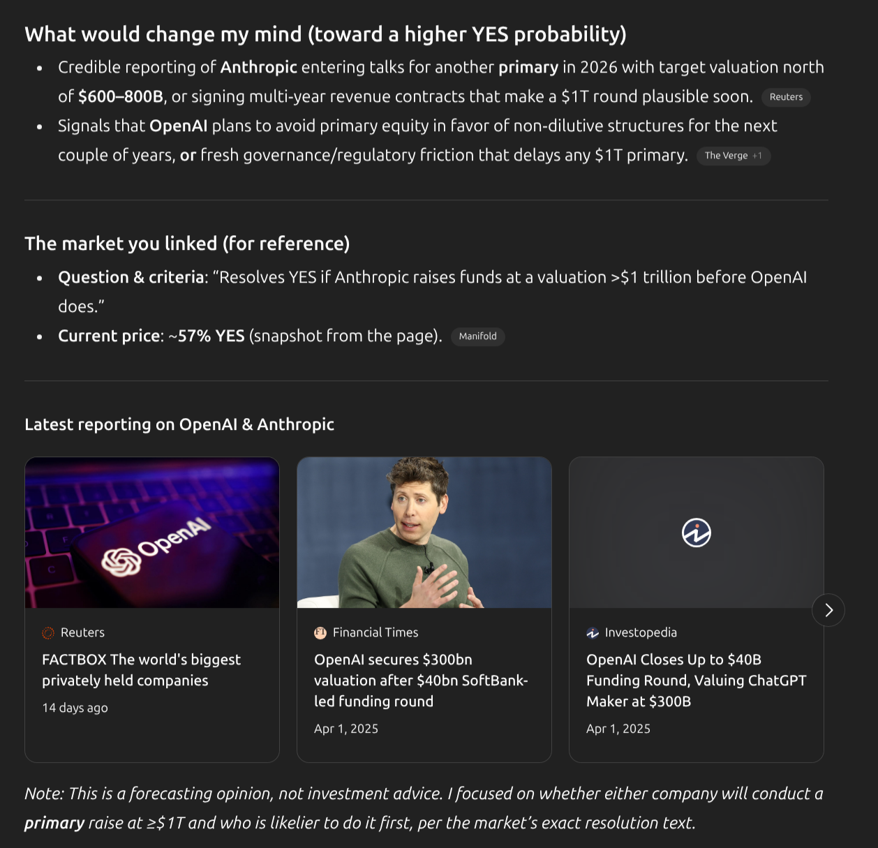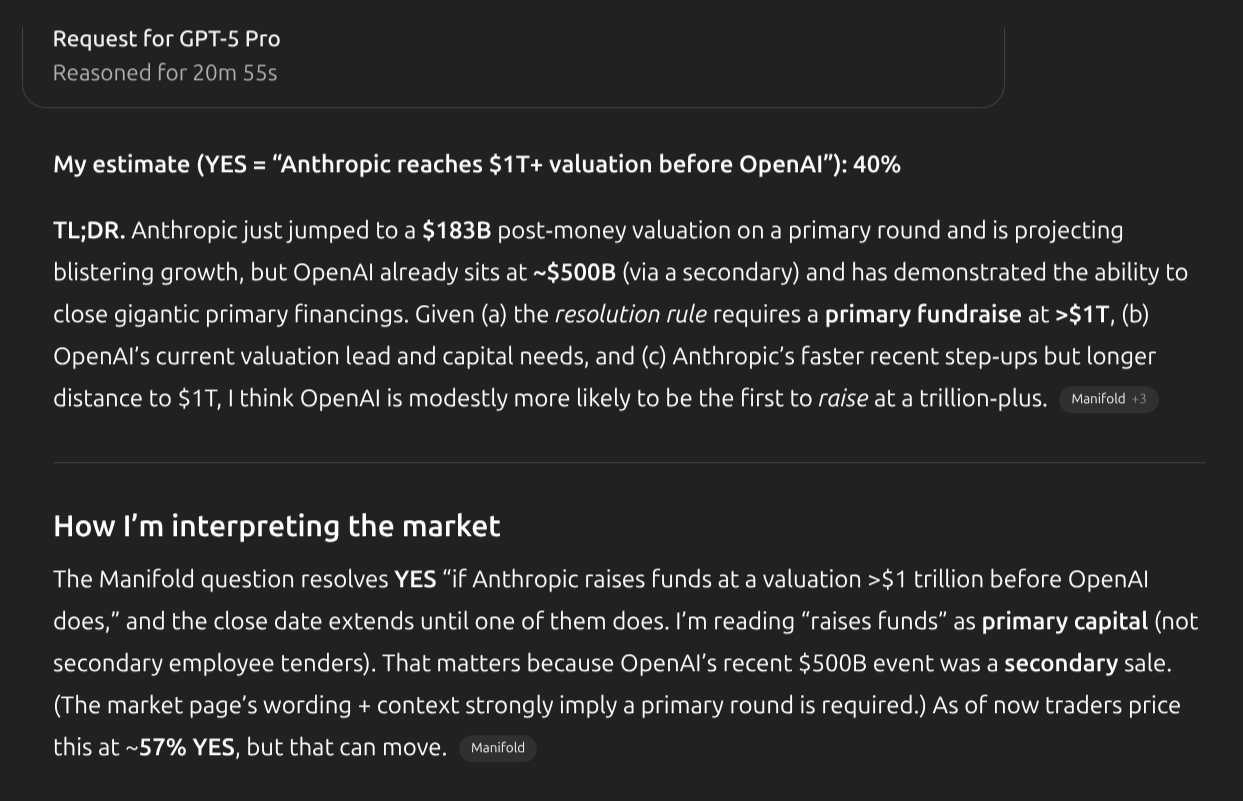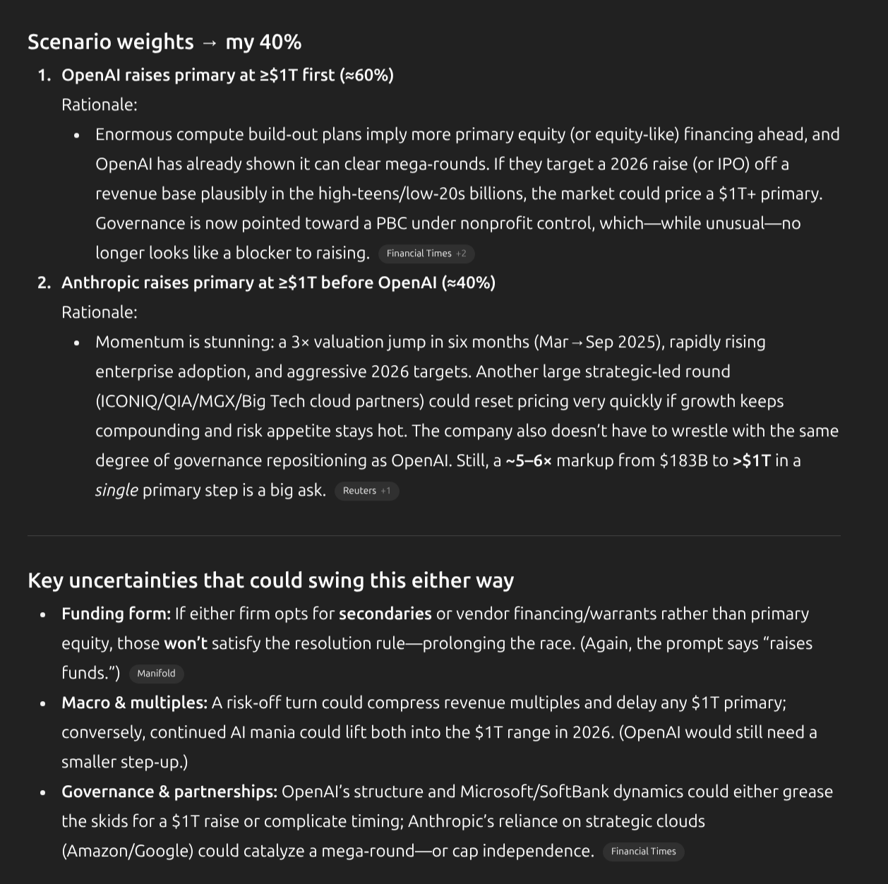 Resolves YES if Anthropic raises funds at a valuation >$1 trillion before OpenAI does.