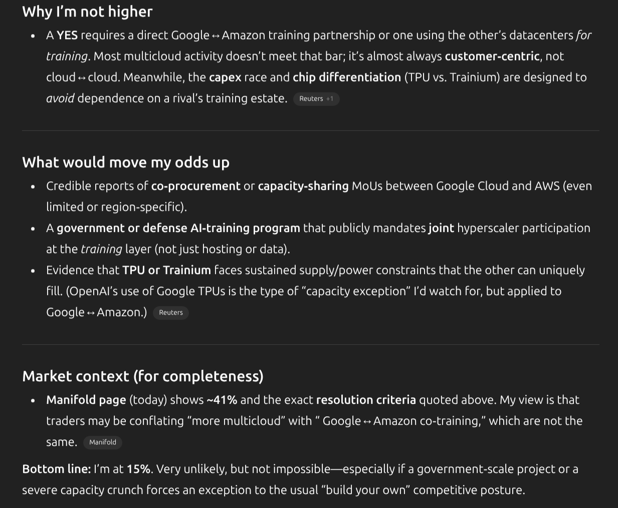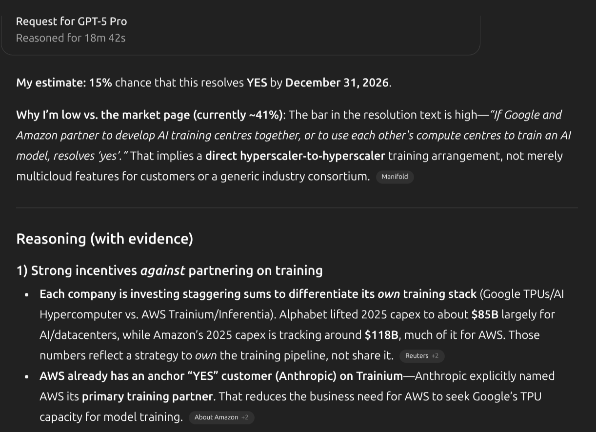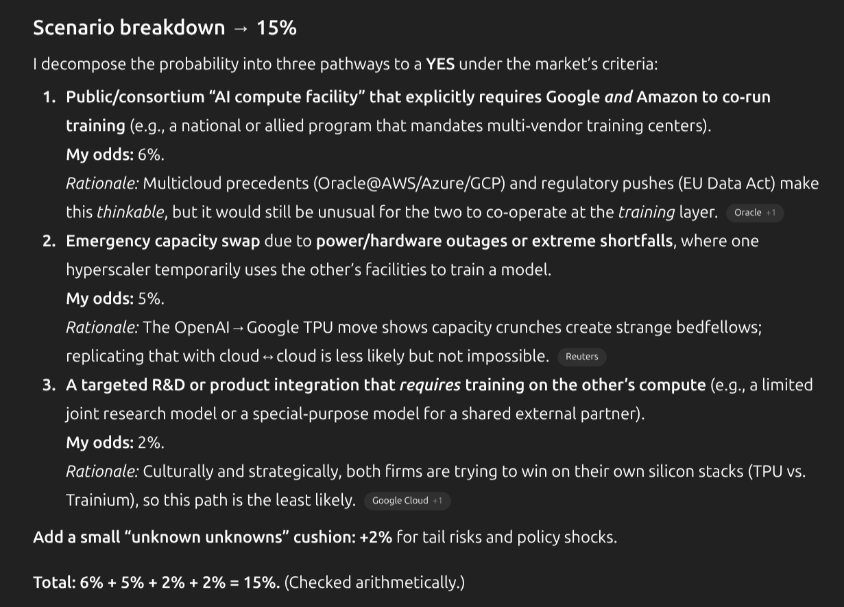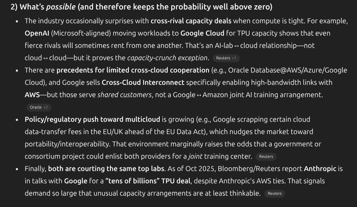 If Google and Amazon partner to develop AI training centres together, or to use each other's compute centres to train an AI model, resolves "yes".