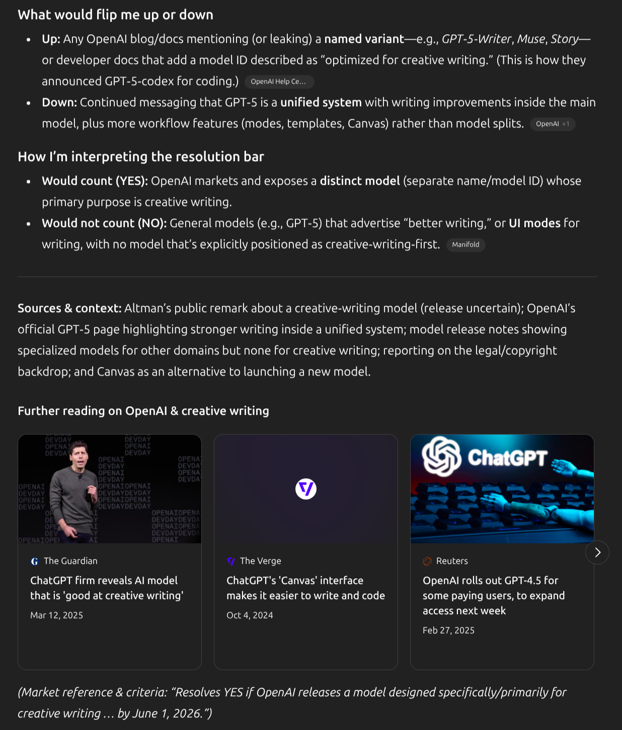 Resolves YES if OpenAI releases a model designed specifically/primarily for creative writing on any date prior to or including June 1st 2026.