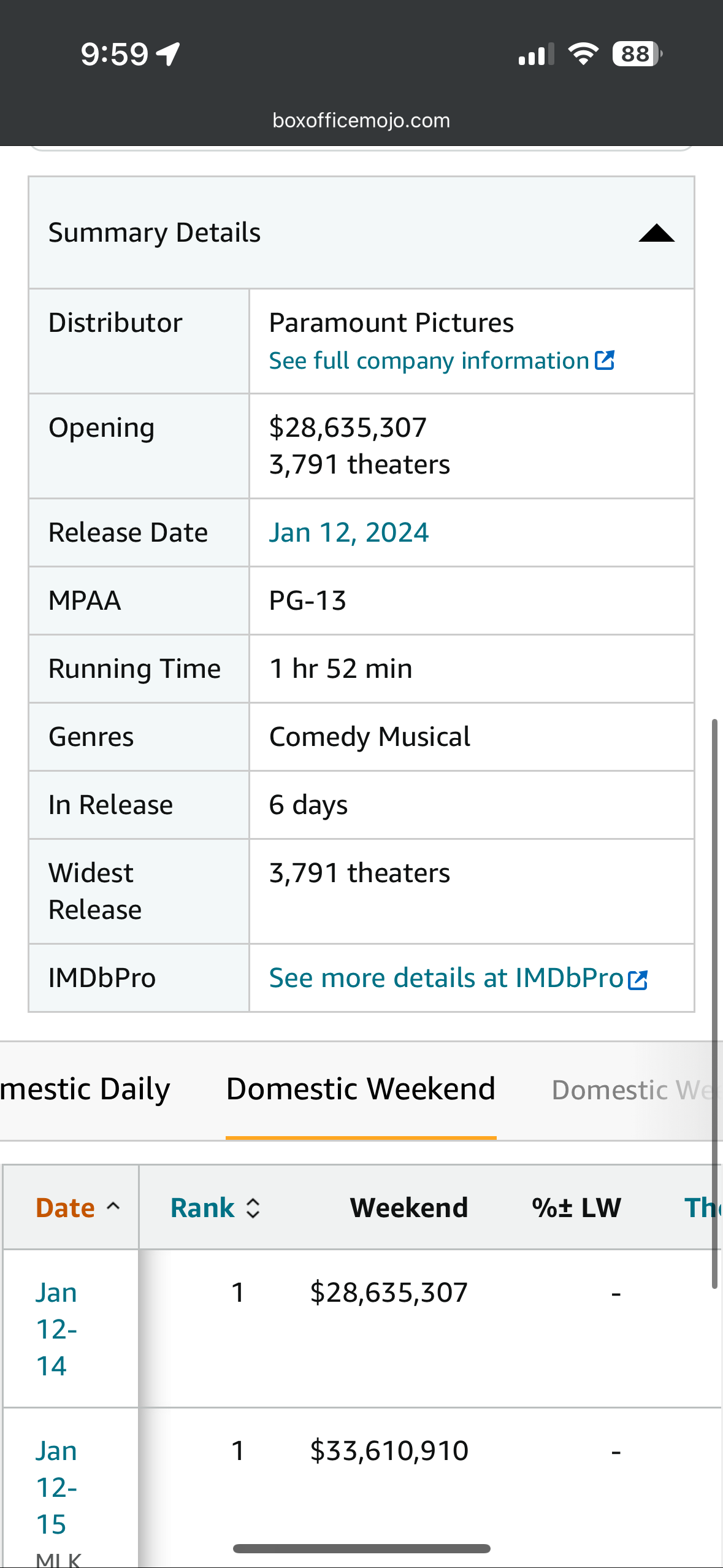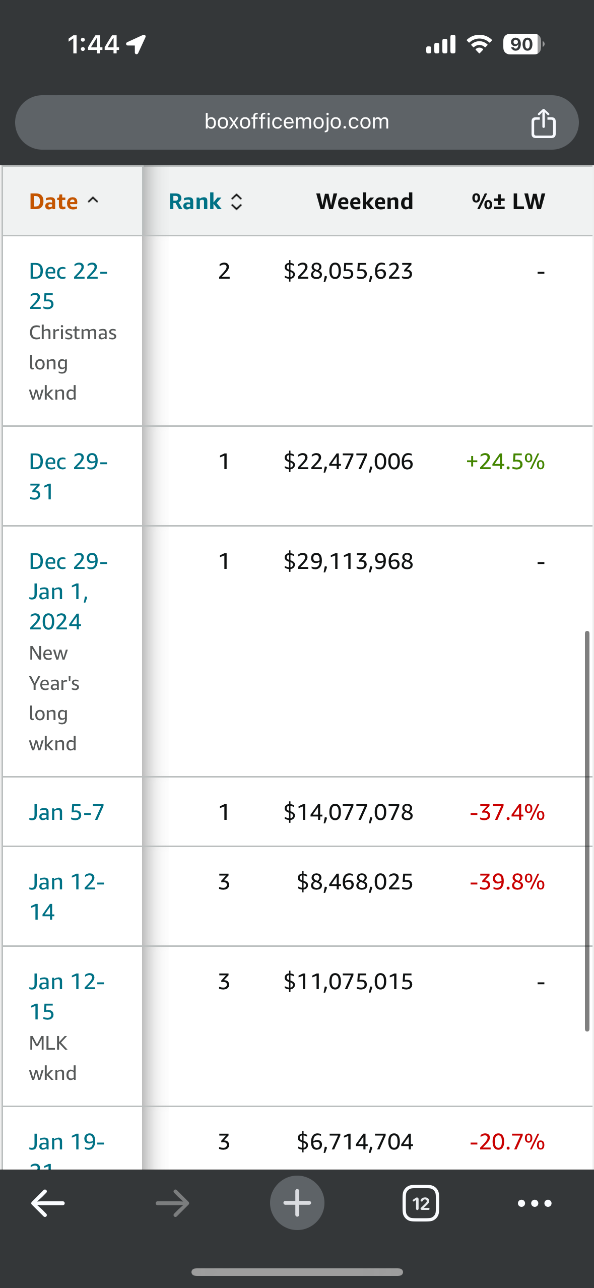 If you look at Wonka’s grosses over the holidays, they give both the normal and long weekends for Xmas, NYE, and MLK weekend.