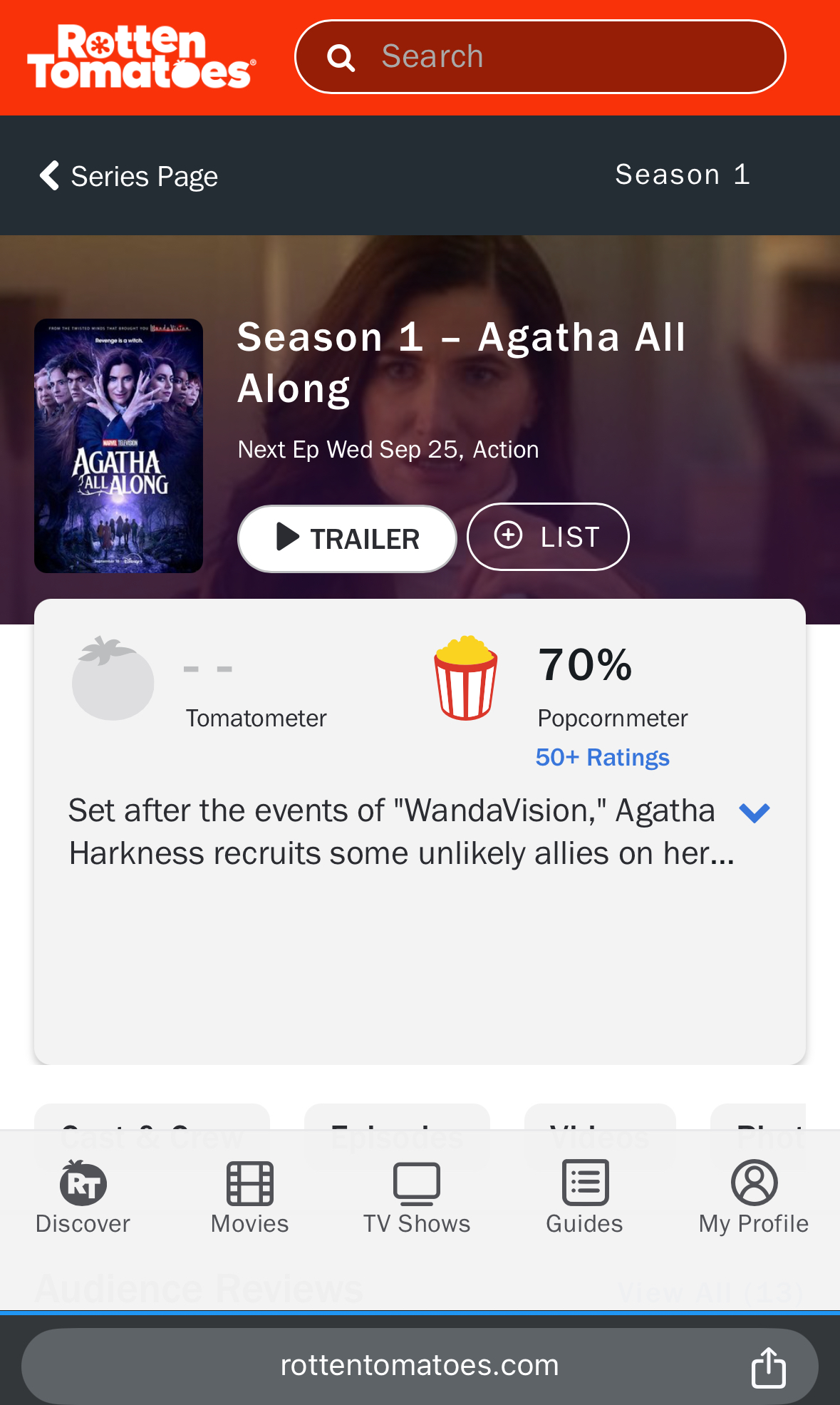 24hours after the finale of Agatha All Along, will the show be rated positively by both critics and fans on RottenTomatoes?