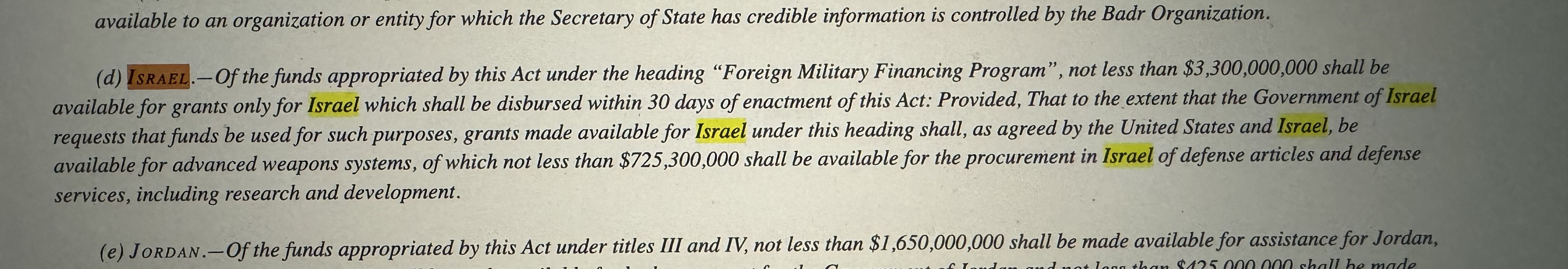 @JeremiahKellick @traders as i’m reading it, this bill seems to allocate a number of funds to israel for defense purposes. that sounds like aid to me. does anyone want to put up a dissenting argument? if not, we’re just waiting for Biden.