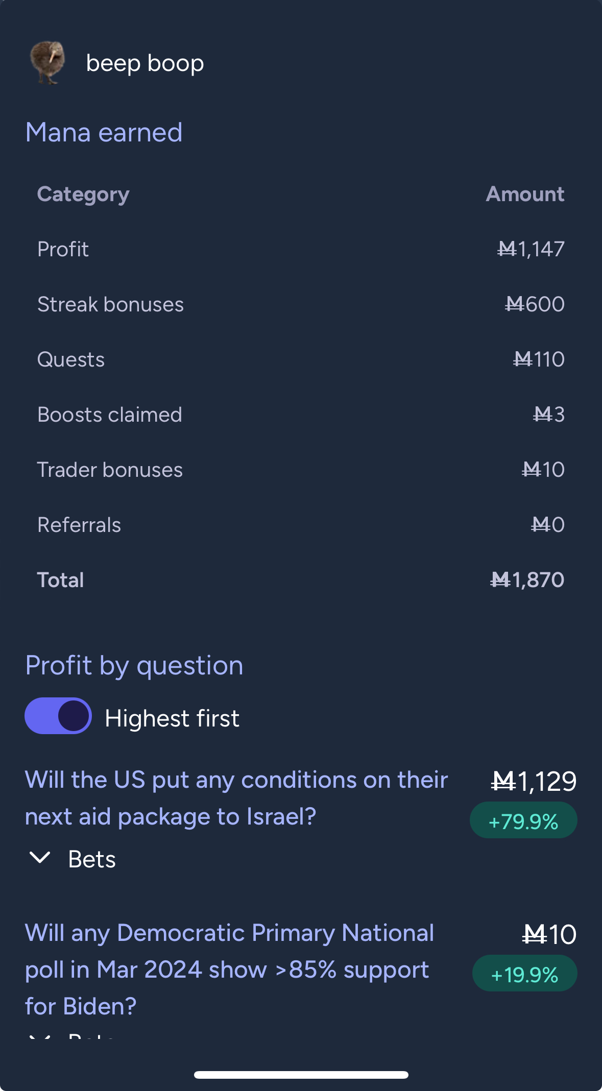 (Matt posting my profit graph was quite funny to me because you can clearly see the big red spike down I had on the 10th after the memo. The other 2 big spikes down were because of Hanania lol)