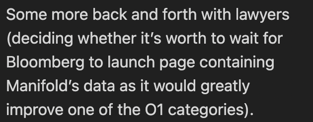 Will Bloomberg launch a page containing Manifold data?