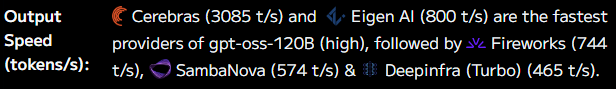 @Valchap According to https://artificialanalysis.ai/models/gpt-oss-120b, this fits the criteria (there are at least three API providers listed with >720 tok/s inference, and the price and intelligence index thresholds are also hit).