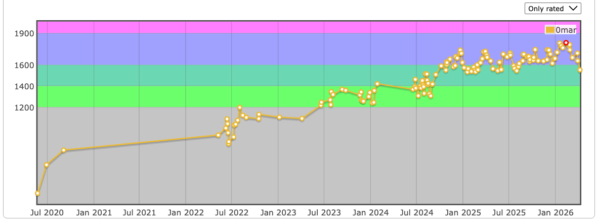 My current rating 1552, and my current peak rating is 1809.