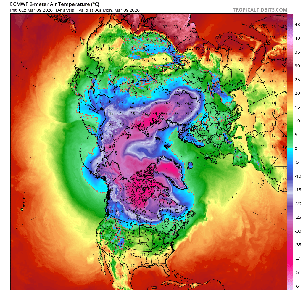 The buildup in the Bering sea and Labrador Sea over the last week or so has countered some of these recent losses, so I do expect some slow buildup all other things being equal as they have been, at least until week 3, or so I speculate.