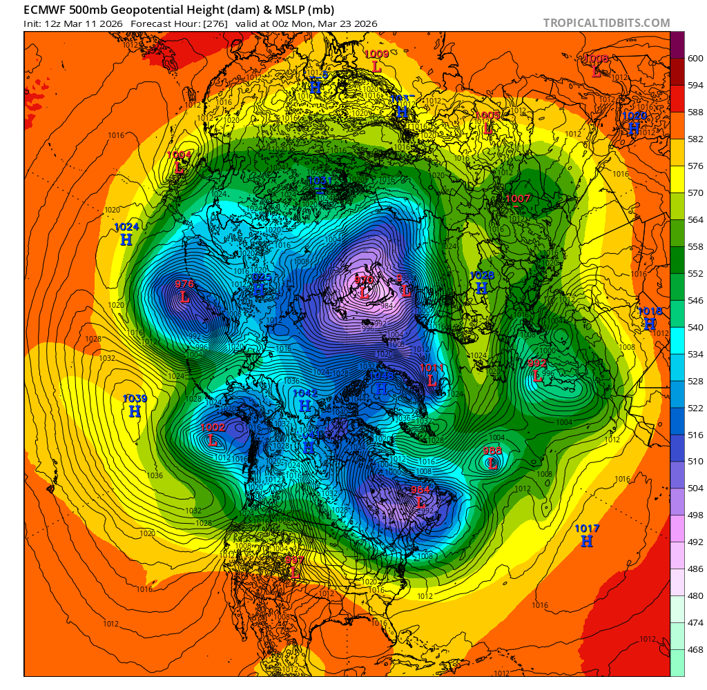 looking through ECM det. model for 12Z that goes to mar 26… The most significant change near the end of the medium range is the change from today’s runs to yesterday is what will happen to the PV once its winds start to weaken after the 18th.. (if this is right, this shift in the forecast means CFS won’t be as useful for a while until the old runs get pushed out the averaging window).