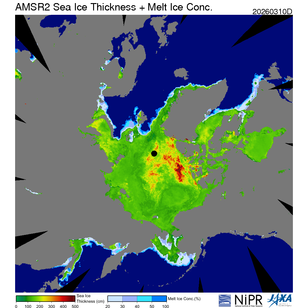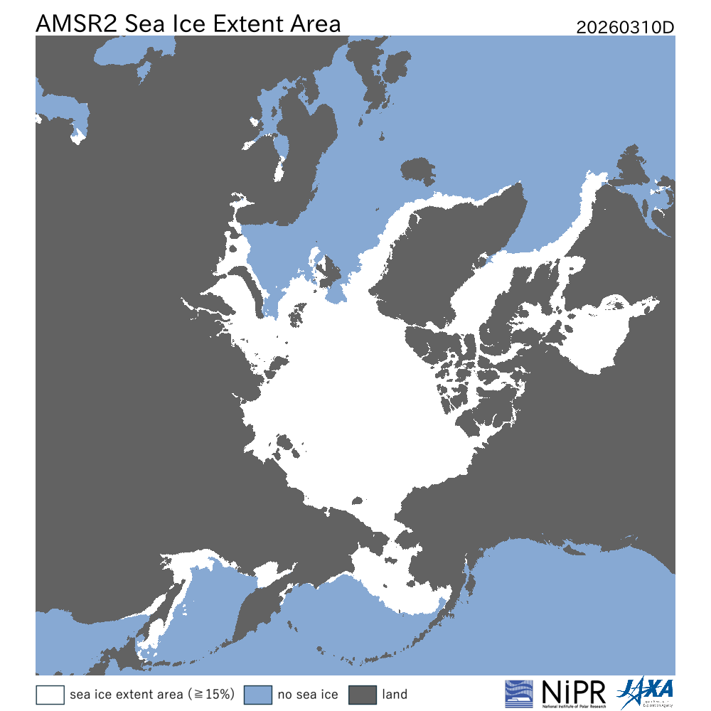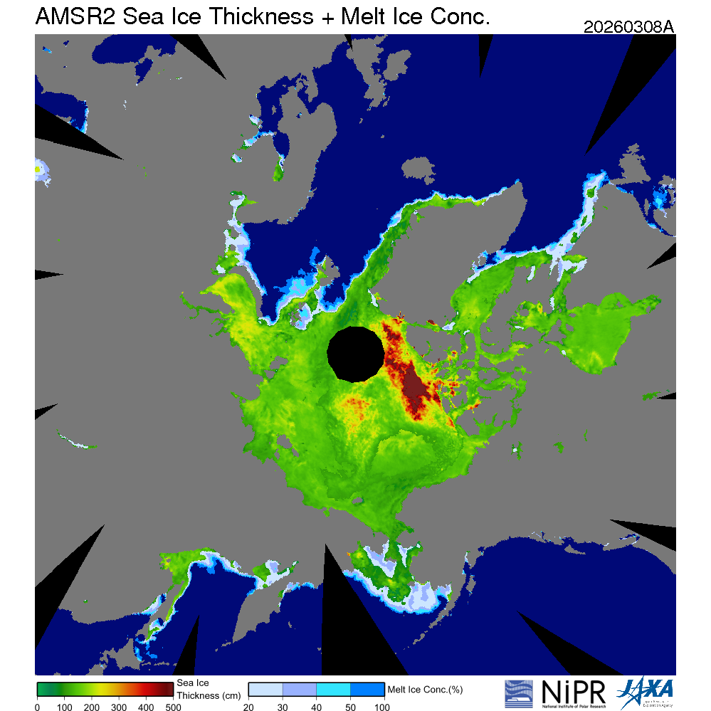 Parts of the Okhotsk Sea and Bering Sea both had above freezing temps for yesteray but it looks like only the Okhotsk Sea was affected so far, as it looks like from following the melt ice products and vector above it was mostly drift contributing to any losses in the Okhotsk Sea. For the Sea of Okhotsk and the Bering sea the Ascending extent the ascending passes have better coverage... (unfortunate the sea ice extent charts dont have the same good masking that the concentration does as that can be misleading for spatial analysis but they really do have great products for diagnostics!)...