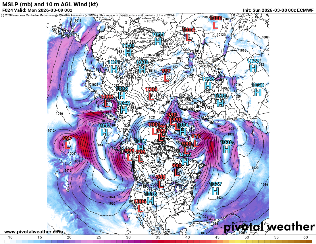The omega block that has brought above freezing air temps to the Bering Sea should resolve soon after which from the last few ECM det. runs show there won't be further chances to disrupt ice build up in that region until the second week of March. Regardless of how many lows develop in the Pacific it won't mattter if the conditions don't favor them entering the Bering sea under the forecast synoptic setup. The 12Z run yesterday showed them entering whereas today the 00Z run showed them not entering (less meridional flow)