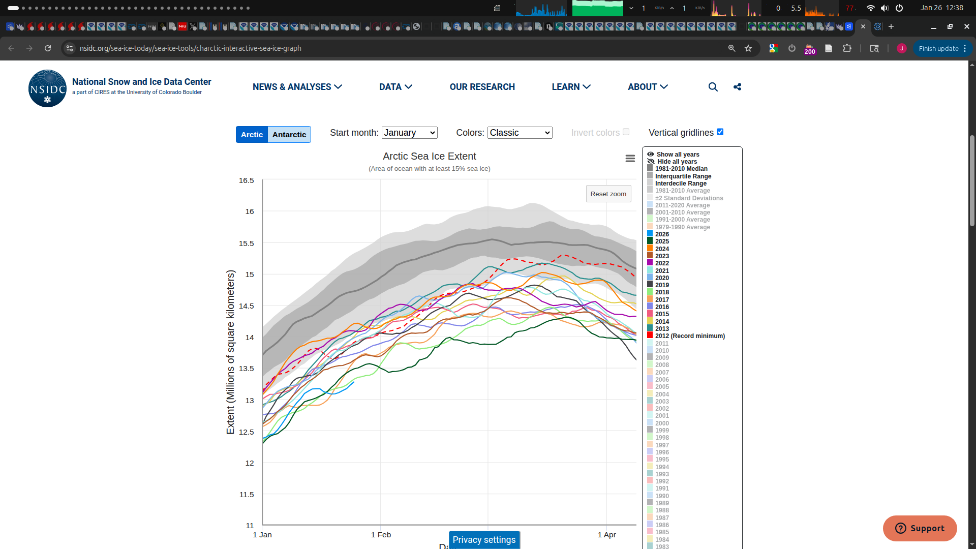 I skimmed the arctic-rcc (which just got designated by the wmo last year) presentation slides (that happened last week) and their outlook (with the last 9 years reference period) is very coarse but it appears they are roughly predicting the same categorically below normal sea ice for winter 2026 as 2025 albeit with lower confidence, although it appears to be based on forecasts from a bit earlier on (early October at the latest).