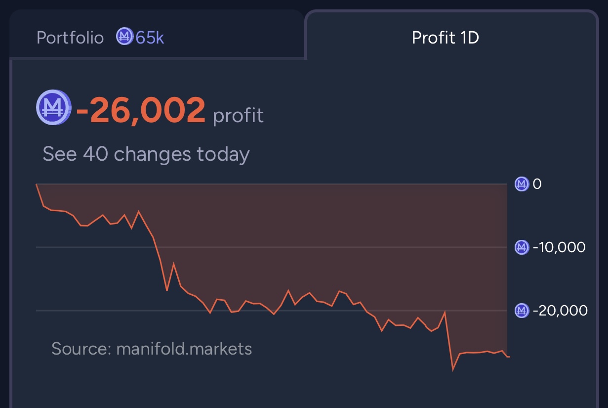 To resolve "One Million Profit" as YES, the first thing to happen must be my all time profit, as shown on my manifold dashboard, going above 1,000,000 mana.