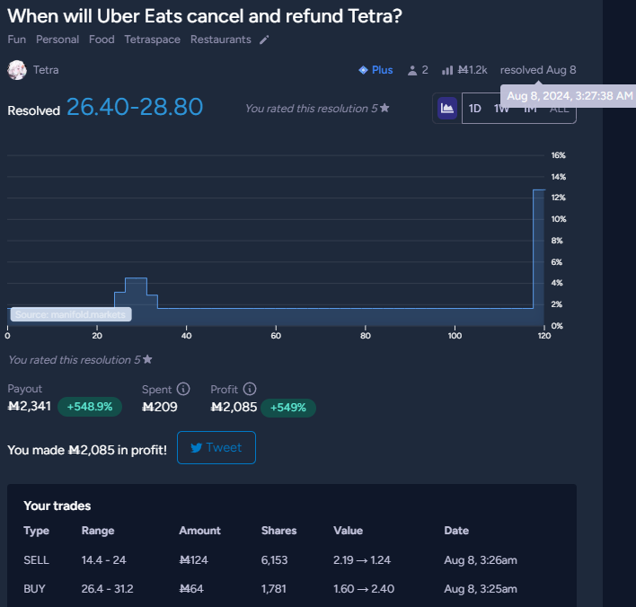 took an educated guess, two minutes before resolution, on Tetra's uber eats order refund based off my previous experiences of similar refund situations lol