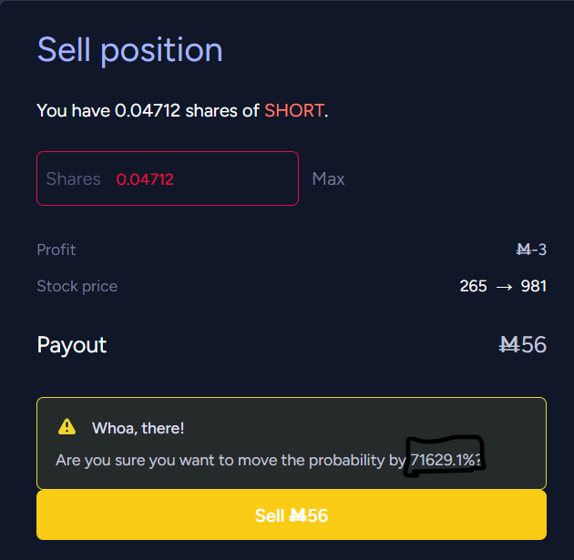 Stocks are not a maintained market type so “intended” doesn’t really apply, they’re just a number that can go up and down. And they don't have a meaningful “probability” so whether or not the UI correctly matches what’s going on under the hood with the AMM, doesn’t matter much