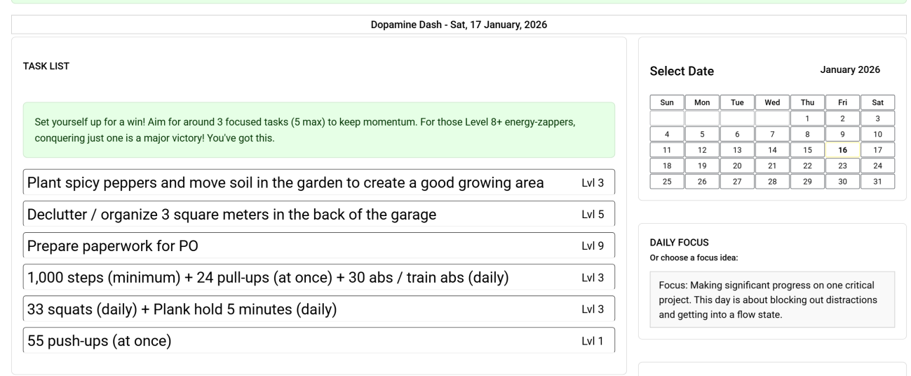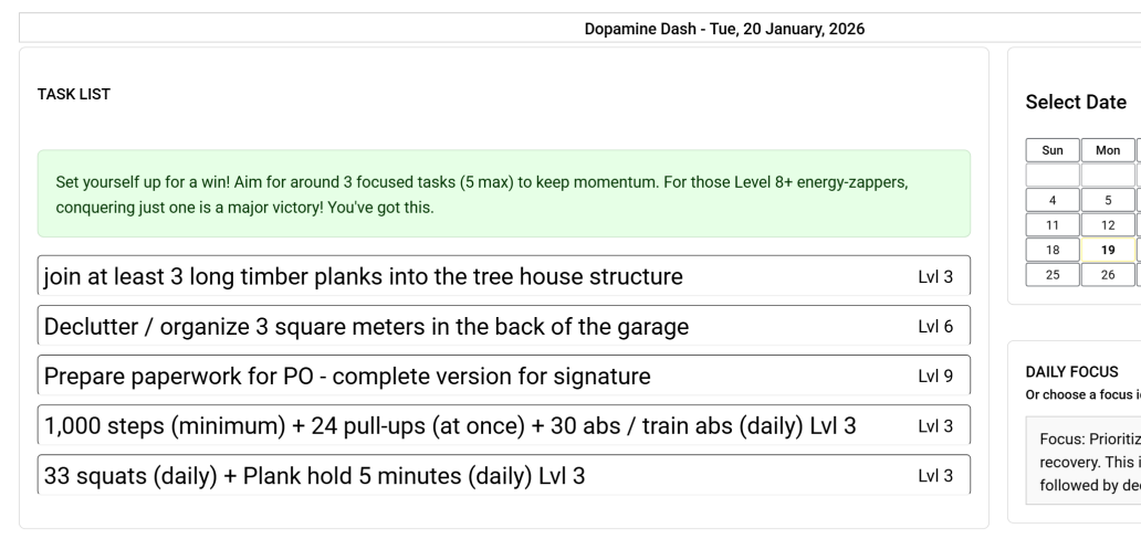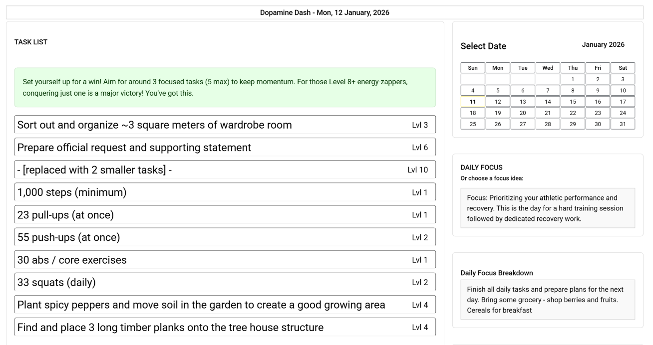Evidence: Screenshots of the planner and logs may be posted daily in the comments.