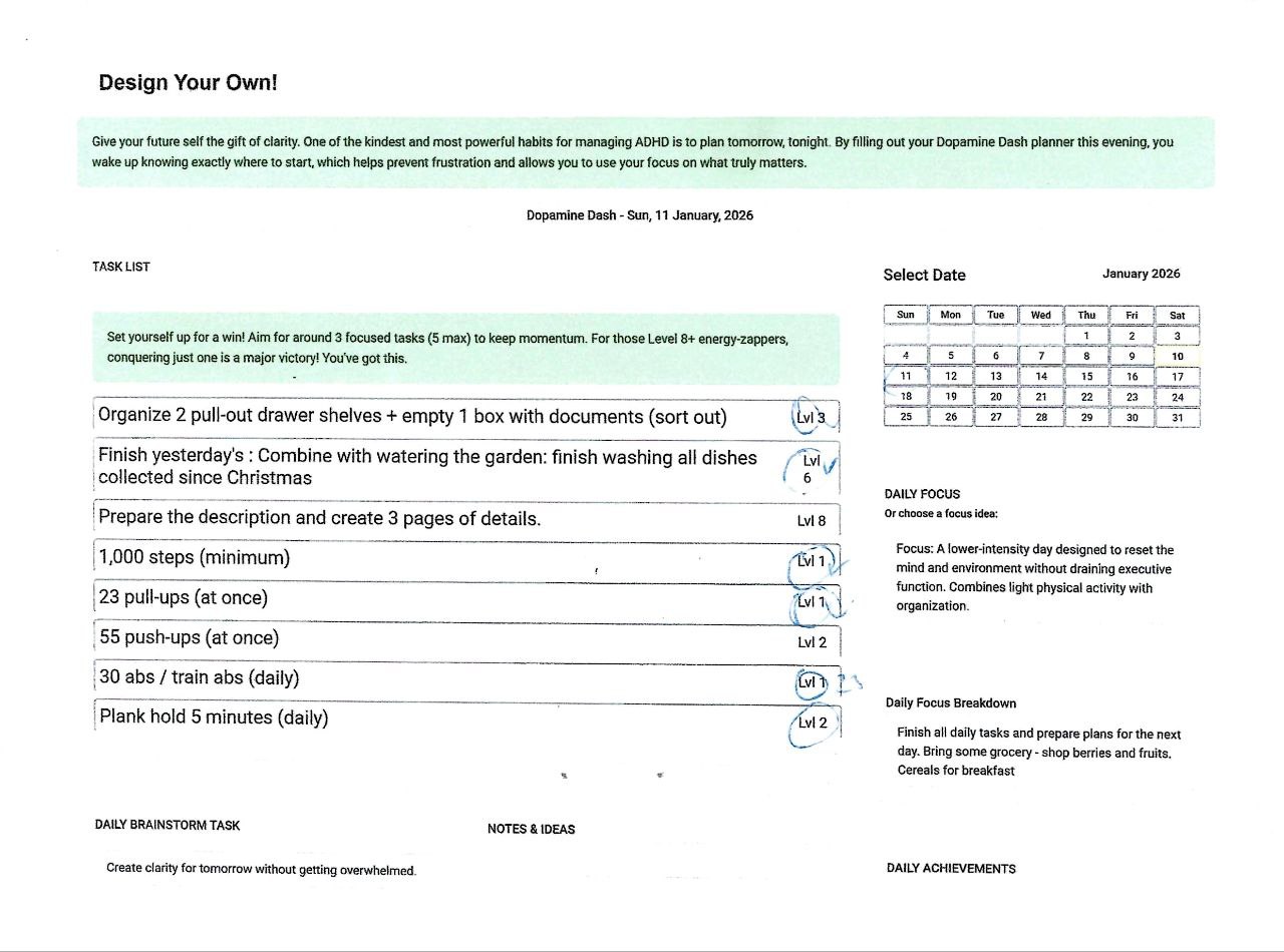 Physical Printing: The plan must be printed as a PDF to be followed offline, reducing the risk of internet-based distractions.
