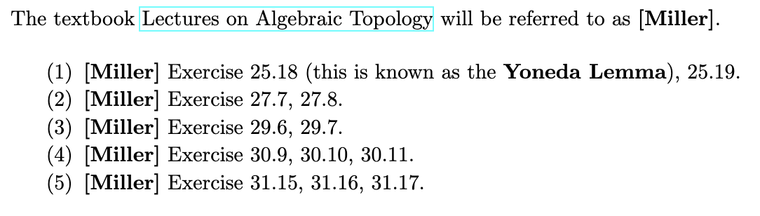 This problem set is currently due on Thursday, April 16th in class (11am). The problem set is given below, where you can find [Miller] at https://math.mit.edu/~hrm/papers/lectures-905-906.pdf.