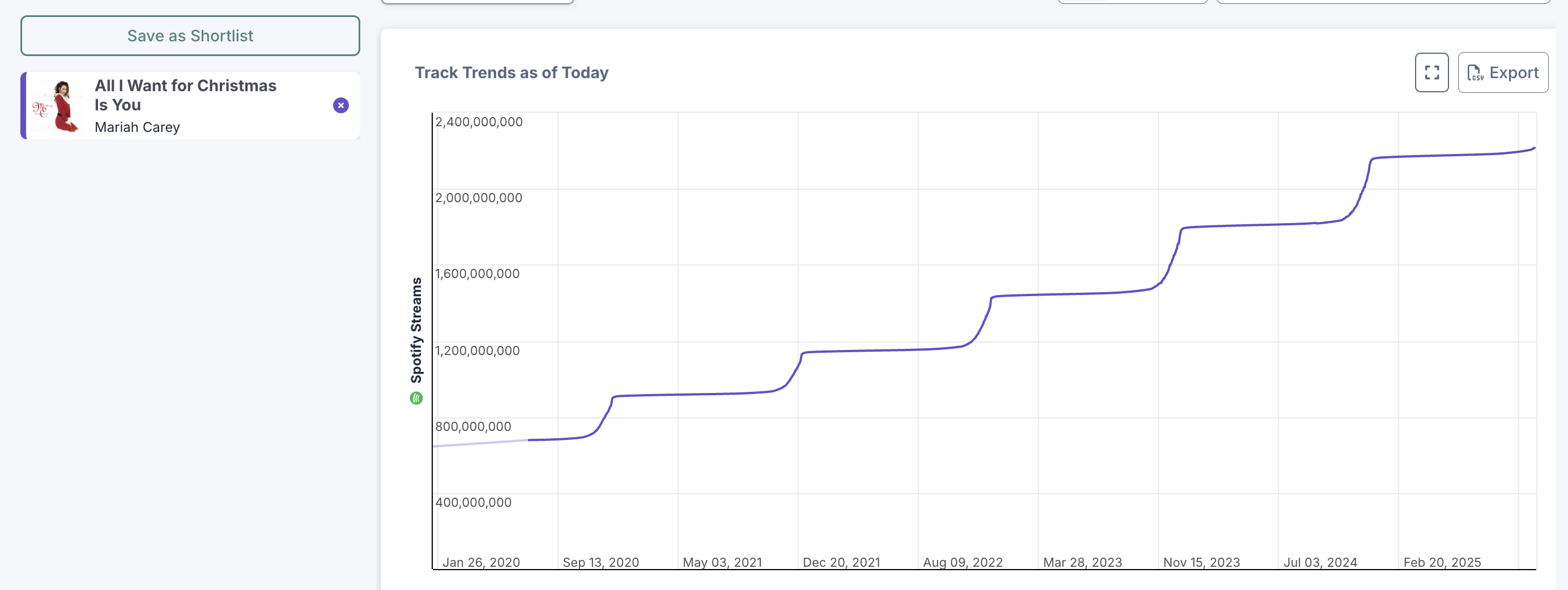 How many Spotify listens will 'All I Want for Christmas is You' have on Christmas 2029?
