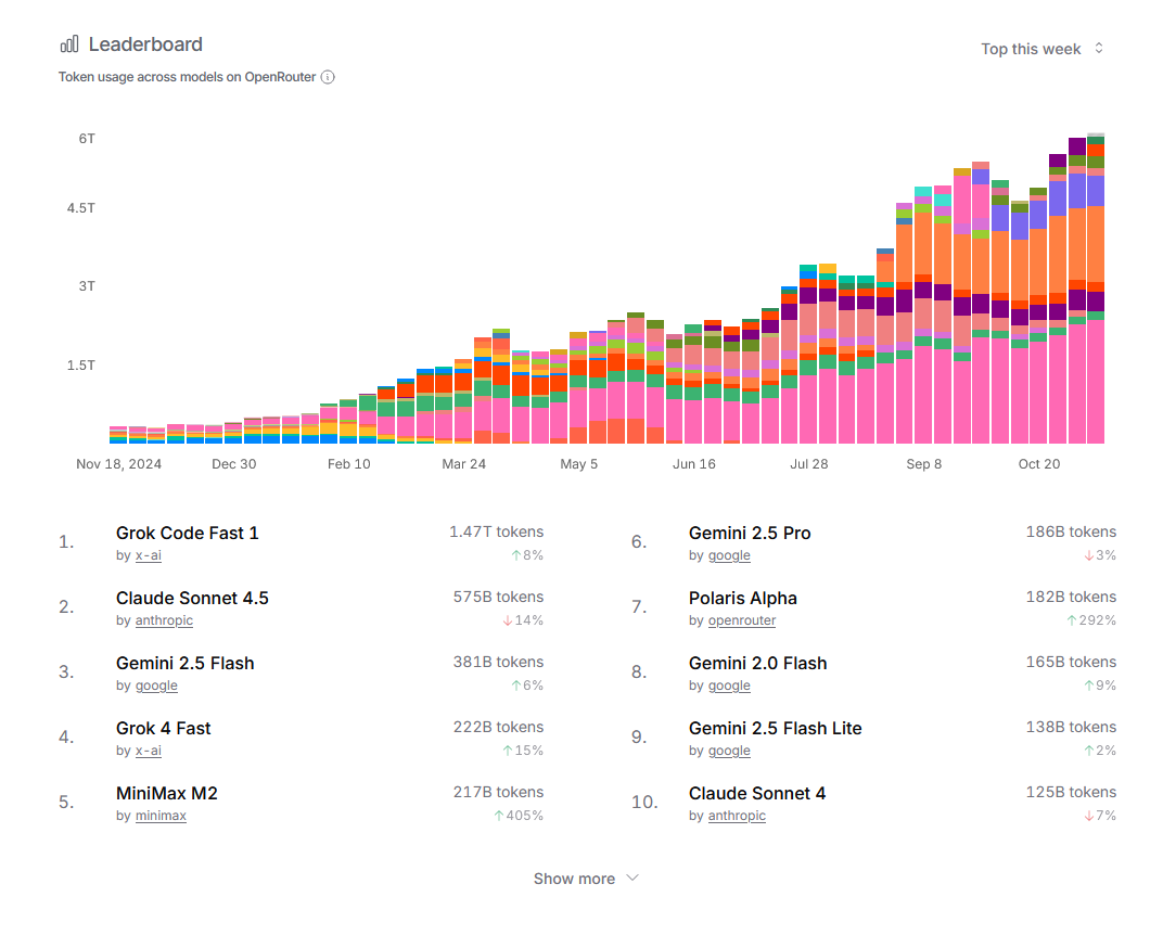 Will total processed tokens by Open Router LLMs exceed 10 trillion in any single week by the end of 2025