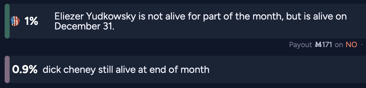 @realDonaldTrump Mockery market of the wording of "Eliezer Yudkowsky is alive for the entire month.