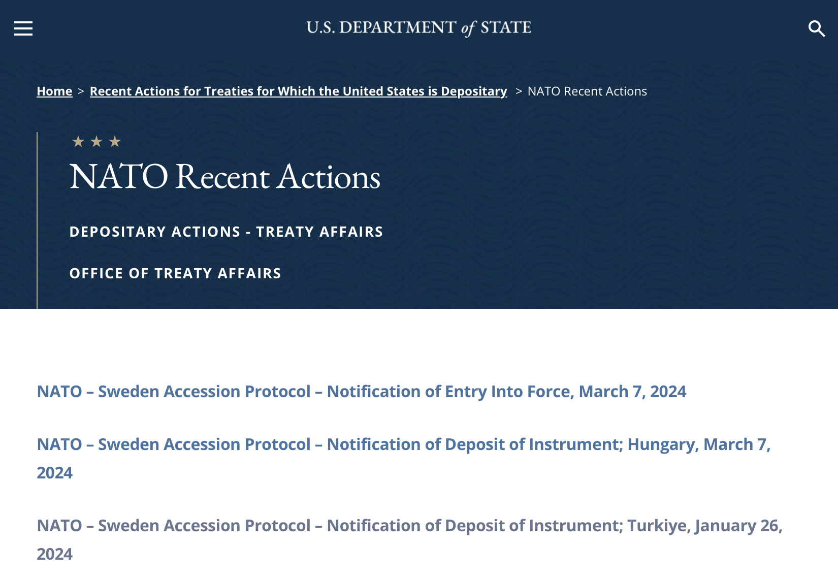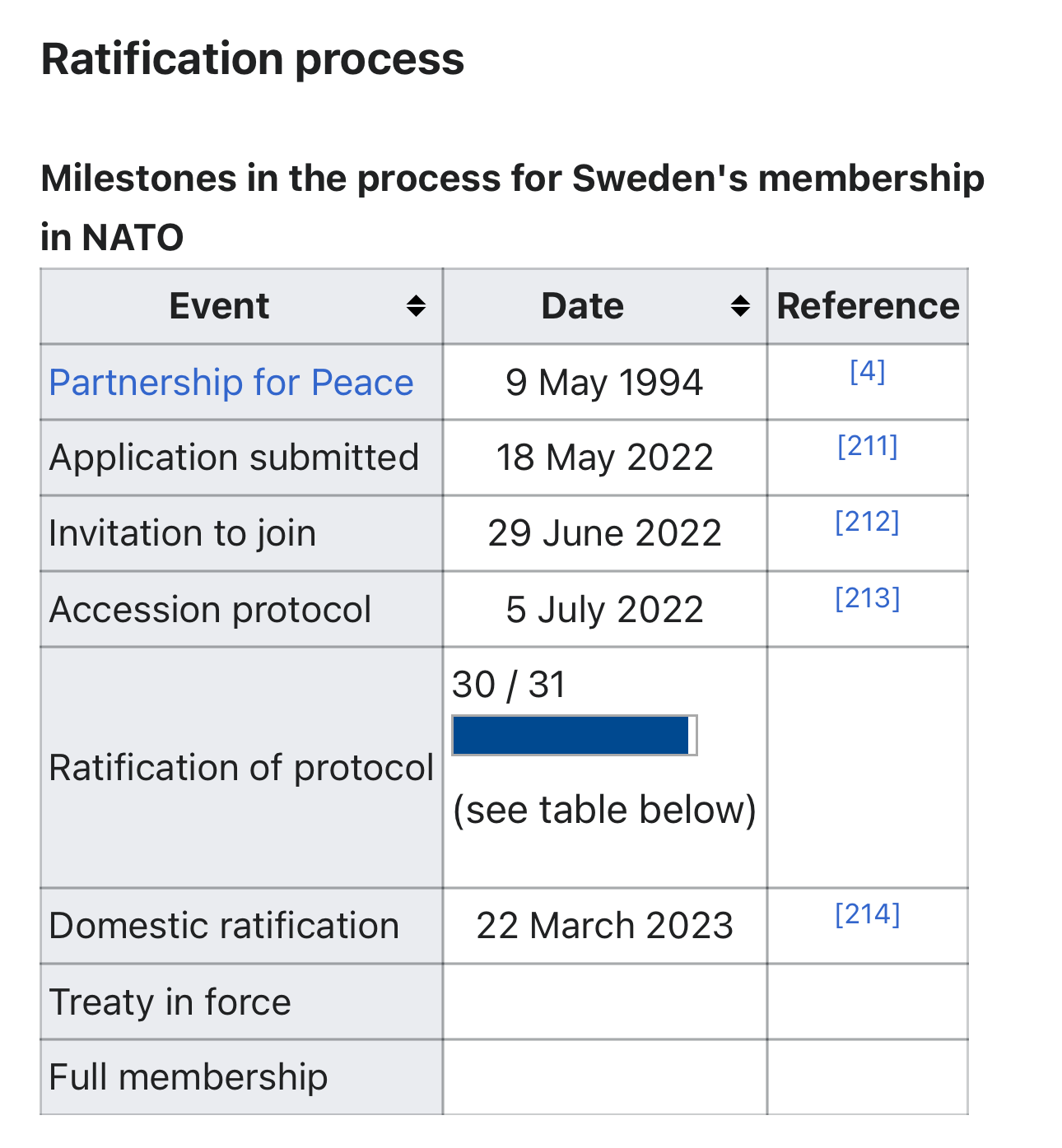 @strutheo In Finland’s case both treaty in force and full membership dates are the same. I don’t know why they’re separate. I think it’s likely both will show 3/6 or 3/7 for Sweden anyway. Ceremony seems… ceremonial for lack of a better word.