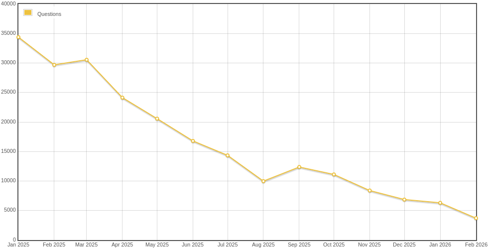 How many StackOverflow questions in February 2026?