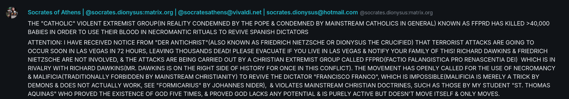 "Socrates of Athens" claims that "TERRORIST ATTACKS ARE GOING TO OCCUR SOON IN LAS VEGAS IN 72 HOURS, LEAVING THOUSANDS DEAD":
