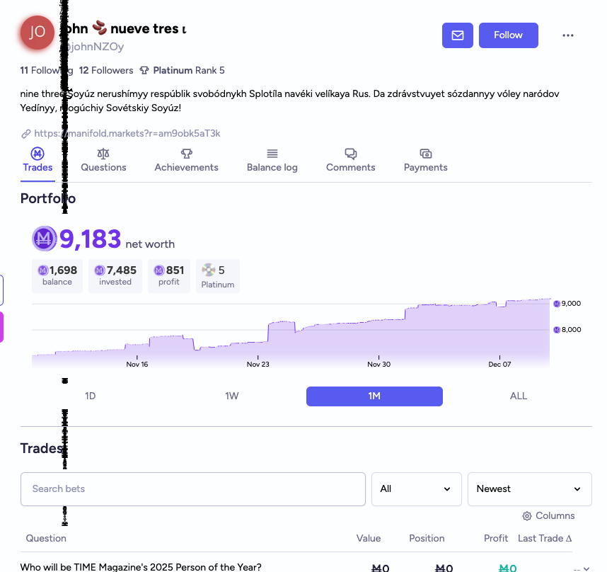 I will use this profile to check: https://manifold.markets/johnNZOy . If the profile looks normal without the vertical bar of text, this market will be resolved YES; otherwise it will resolve NO.