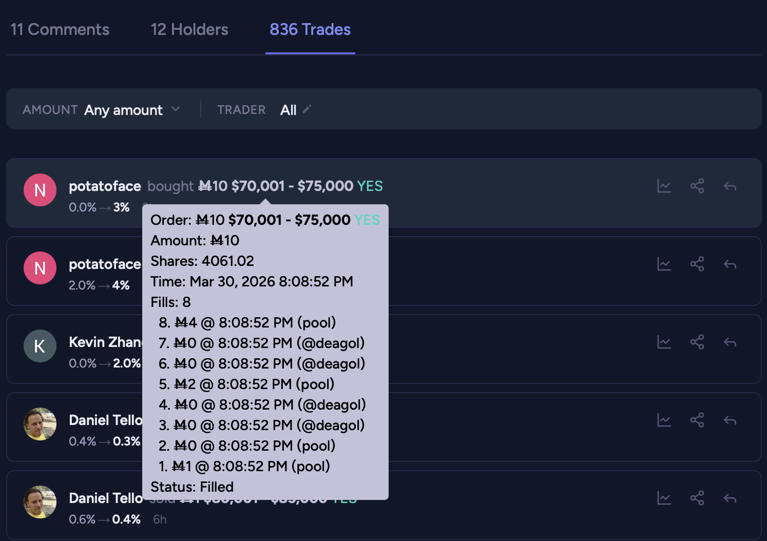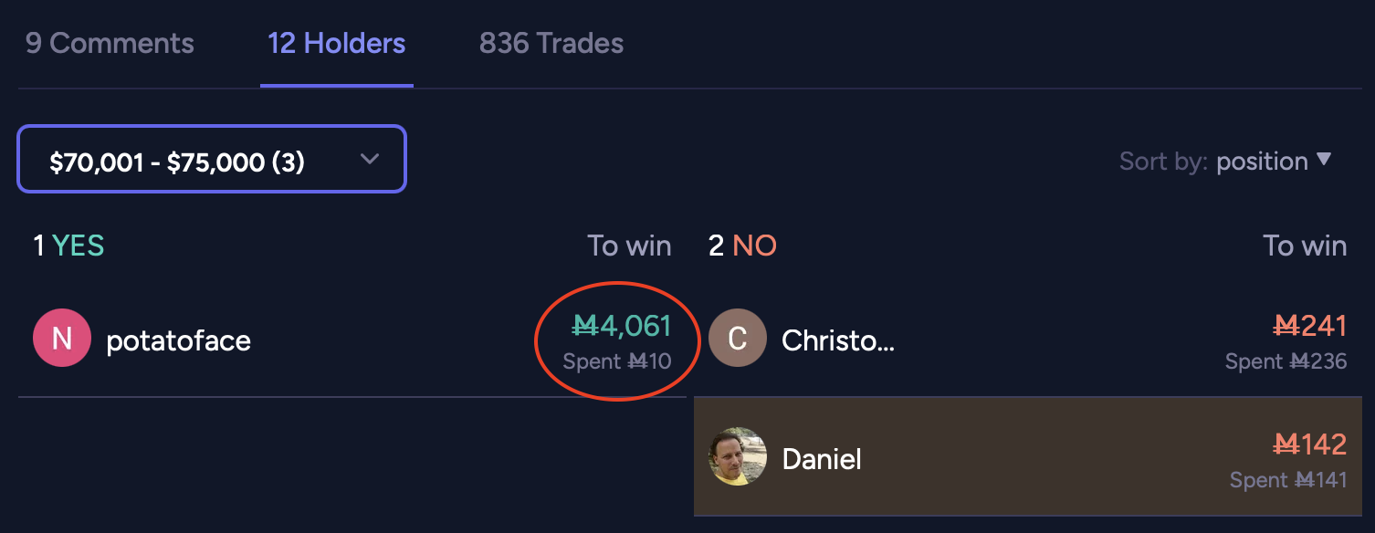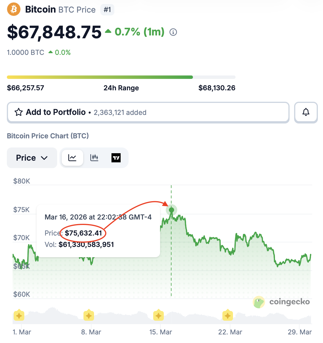 @web3nafee how does 2% to <=70k and 3% to 70-75k make any sense?? you said, "highest price bitcoin hits within the time frame" which was ~$76k on 3/16 near 10 PM ET.