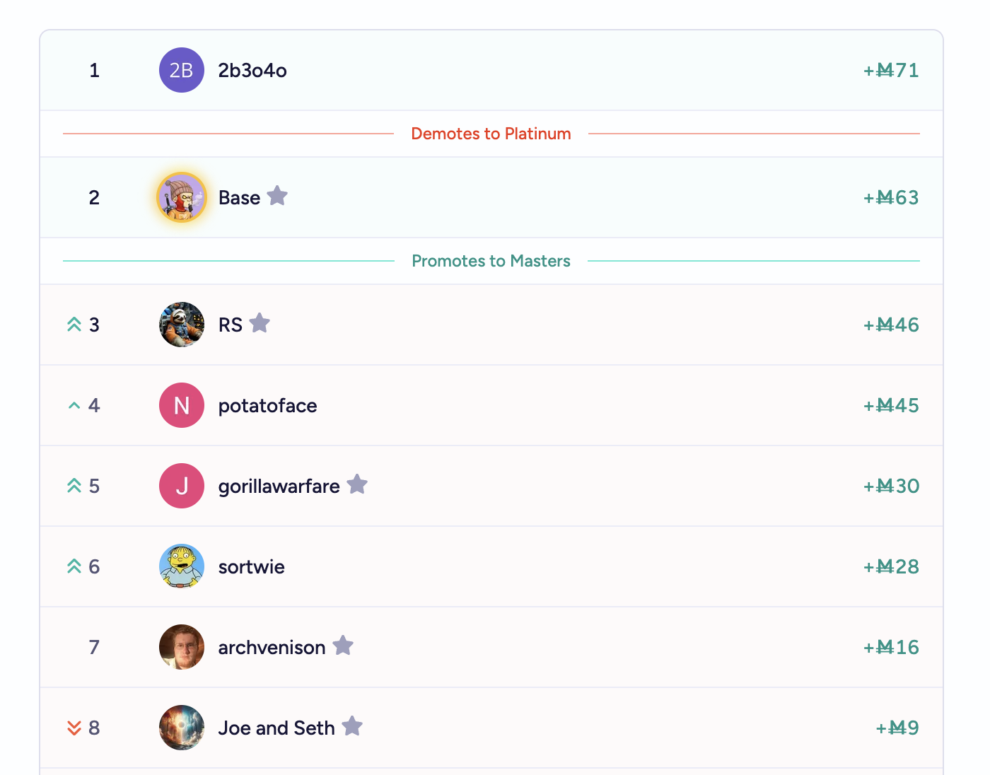 Resolves YES if "Demotes to Platinum" appears above "Promote to Masters" in any group in Diamond League in Season 36 as shown here: